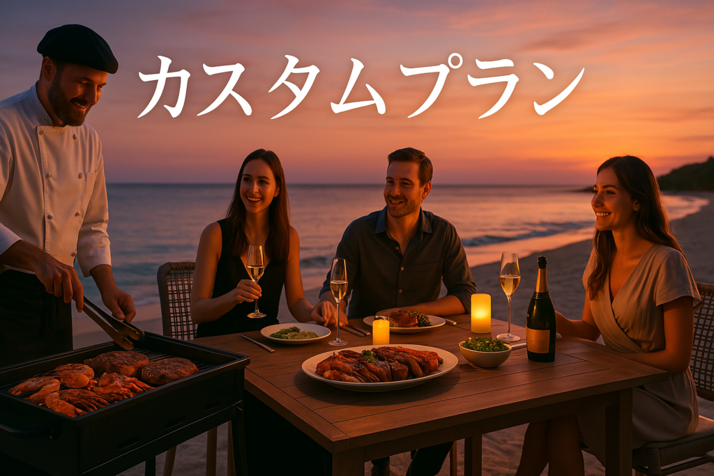 面倒な準備や後片付けは一切不要。食材も機材もすべておまかせで、手ぶらで気軽にBBQ!あとは南国の風を感じながら、焼いて、食べて、笑うだけ。
